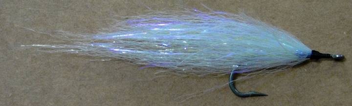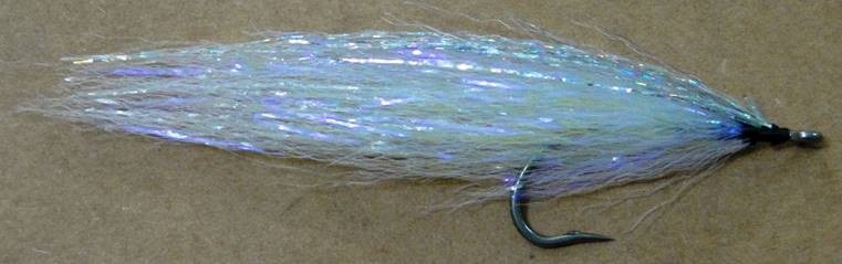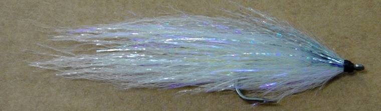 9. Finalizando a isca, prenda mais um pequeno e curto tufo de glimmer (neon ou irizado) por dentro do gap do anzol. Fixe o olho.