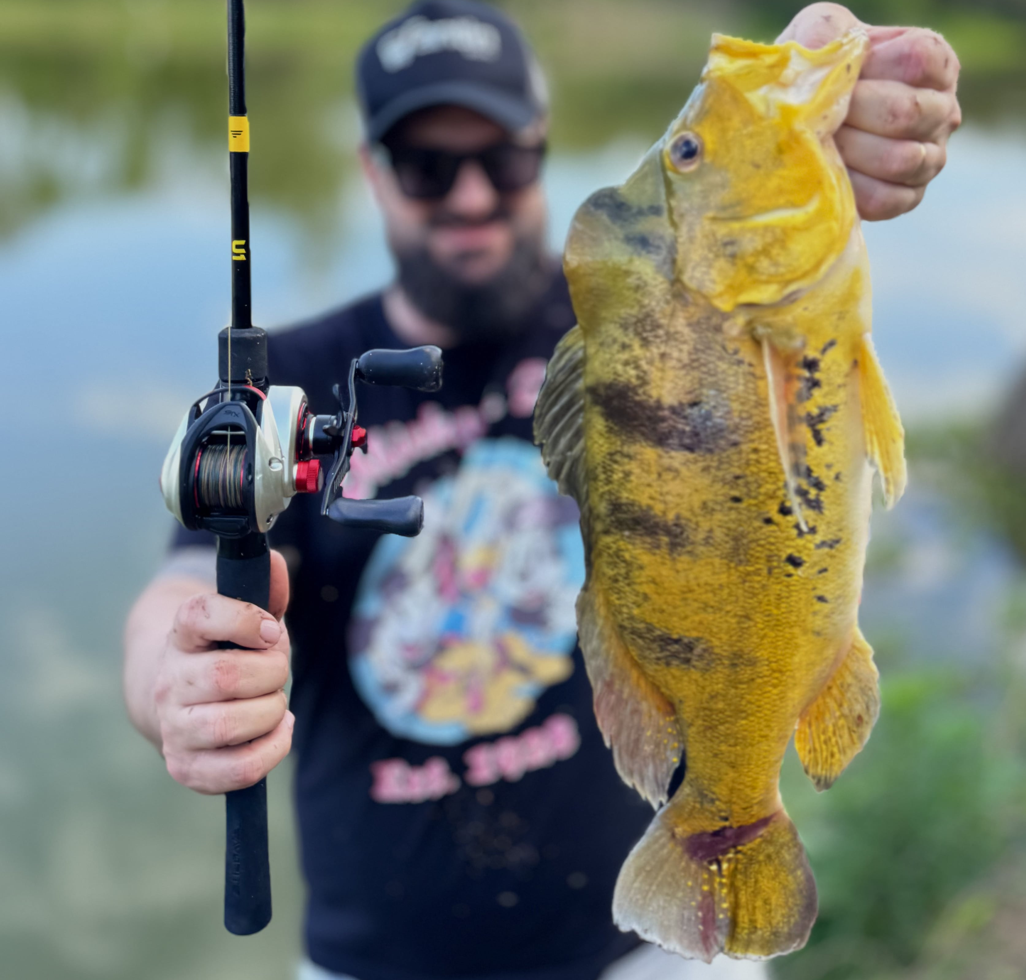 Primeiro, Bruno Fernandes teve seu peixe homologado com 45 centímetros, igualando o então recorde brasileiro que pertencia a Luccas Diniz. A captura, realizada no Pesqueiro Kachengo, em Nova Odessa, interior de São Paulo, colocou Bruno no topo do ranking nacional da espécie, ainda que em situação de empate técnico.